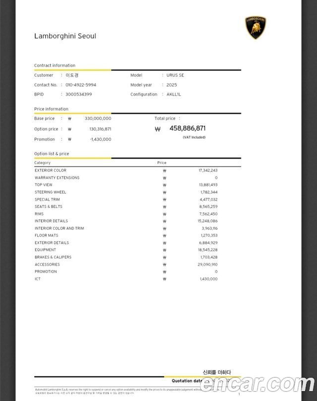Lamborghini Urus из Кореи Encar